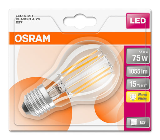 Prix d'origine 0,00 € - Prix d'origine 0,00 €Prix d'origine 0,00 €12,99 €12,99 € - 12,99 €Prix actuel 12,99 €| /Réf : 4058075112445 Dont 0,19€ d'éco participation. Ampoule LED filament OSRAM de forme standard, culot E27, consomme 7,5W équivalent 75W, 1055 lum...